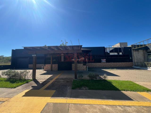 Um pavilhão amplo e moderno com garagem para descarregar mercadorias e nove vagas de estacionamento, duas salas a parte, sendo uma delas a cozinha e três banheiros